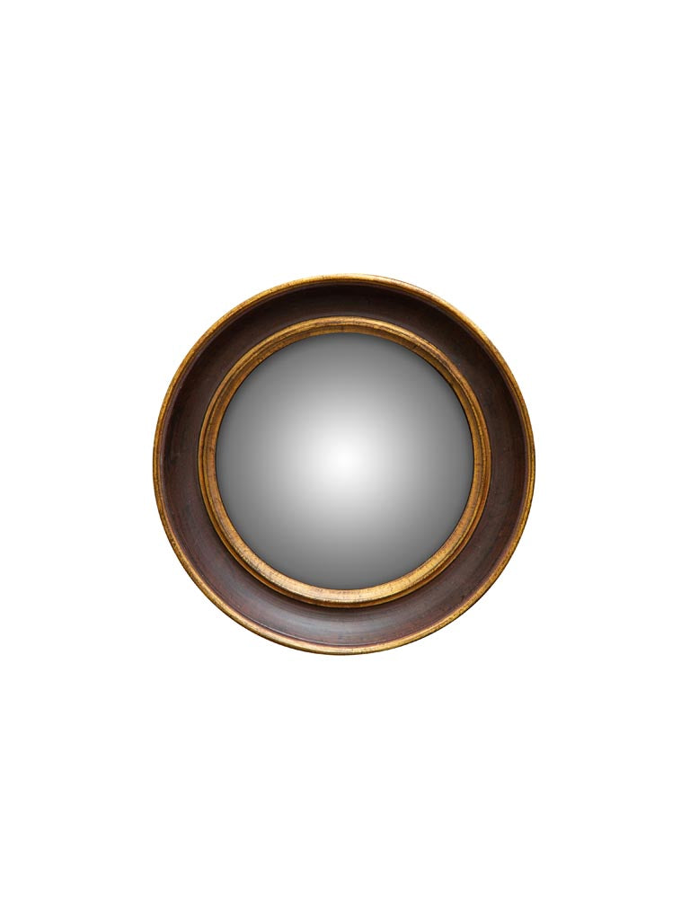 A classic convex mirror framed in black with a double gold edge—small in size, big on style. At 17.5 cm across, it’s the perfect accent for adding a touch of vintage drama and eclectic charm to any wall.