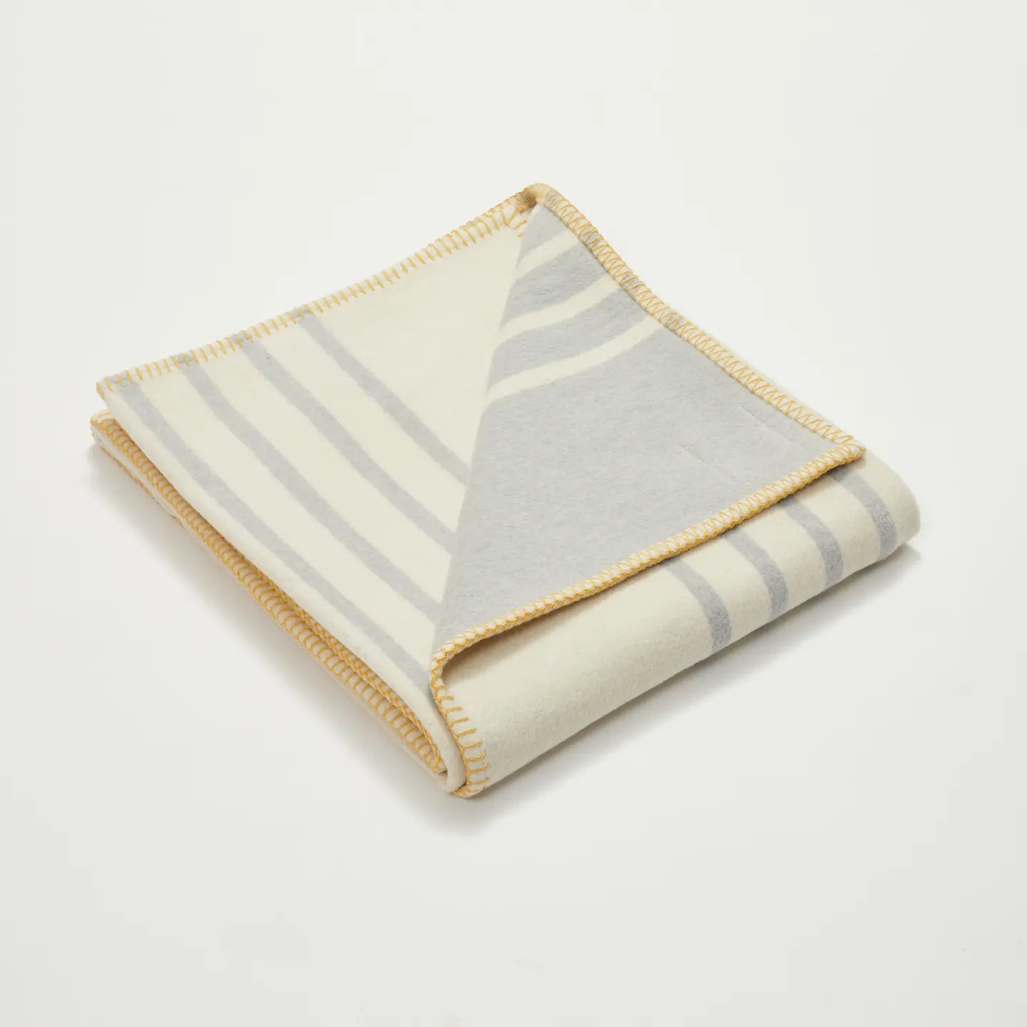 Grey/Yellow Stitching Striped Recycled Cotton Blanket