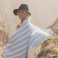 100% recycled, our jaunty grey stripe recycled cotton blanket nods to the nautical with classic coastal tones and design. Whether it’s pulled around your shoulders for sunset G&Ts on the terrace or nestled between you and the sand as you doze beneath the sunshine, this blanket is everything you could want and more. Providing protection, warmth and comfort, it will quickly become a go-to favourite for all the family.