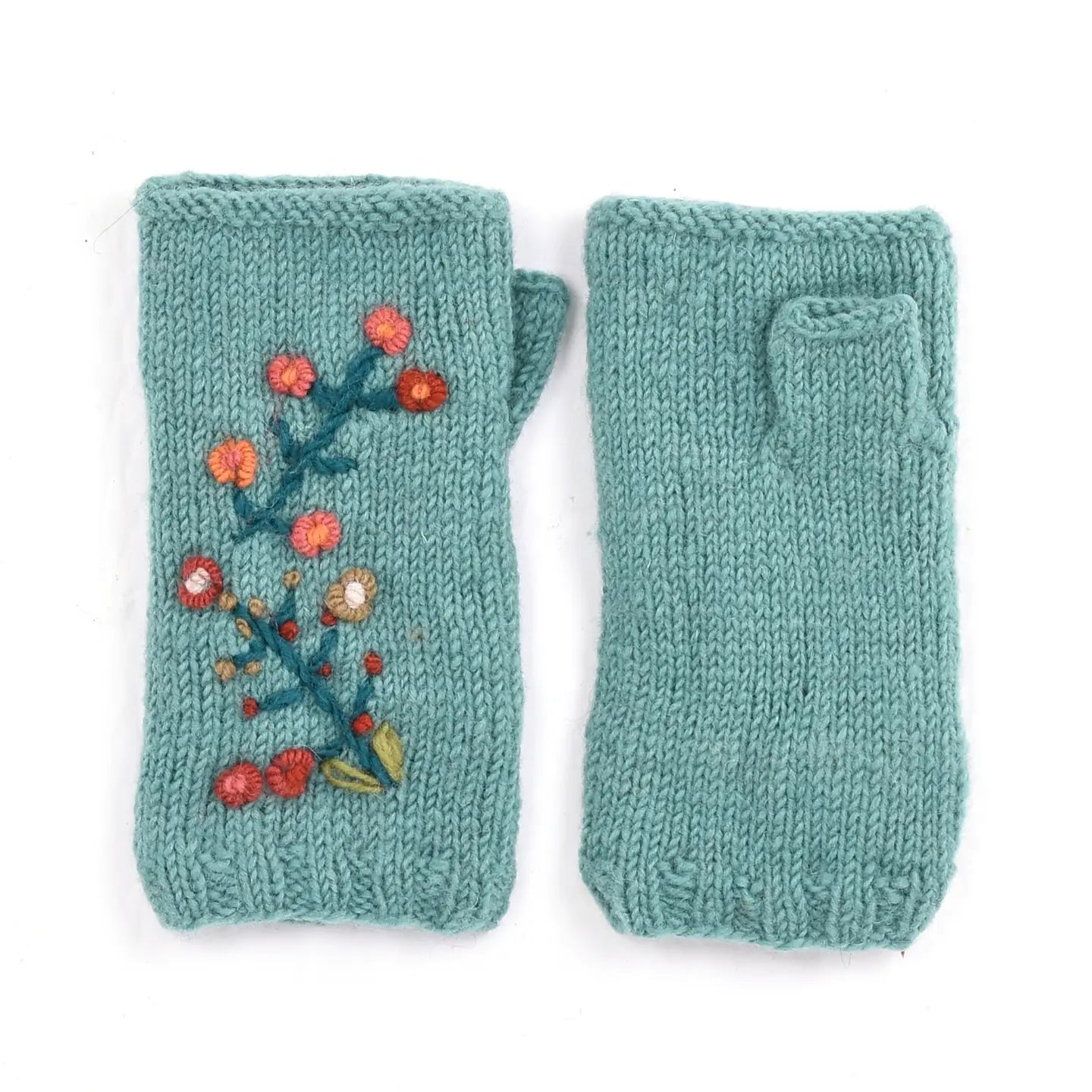 These Fair Trade hand warmers feature delicate hand-embroidered florals on a dense 100% wool knit, blending comfort with an artisan-made finish. Fully lined with fleece for lasting warmth, they leave fingers free while keeping hands cozy during everyday tasks.