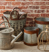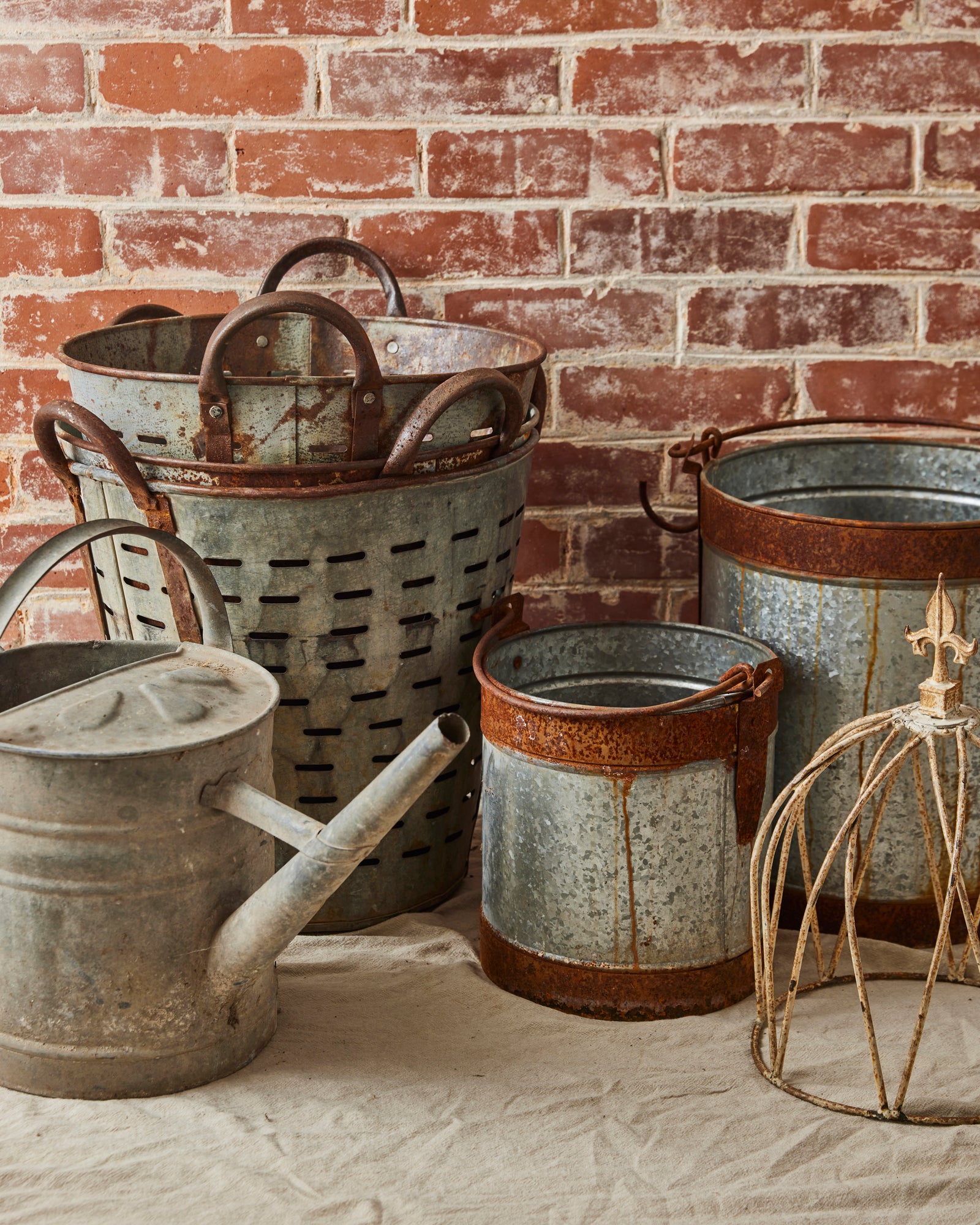 Weathered, worn, and wonderfully imperfect—this collection of vintage galvanized garden buckets is full of rustic soul. Each piece boasts its own unique patina of age: think rusted rims, dented sides, and years of sun-faded charm. Once hardworking garden staples, now they’re ready for their next life—as planters, storage, or simply sculptural accents with story to spare. Available in a mix of sizes and shapes, no two are exactly alike. Gather a few for a perfectly imperfect display.