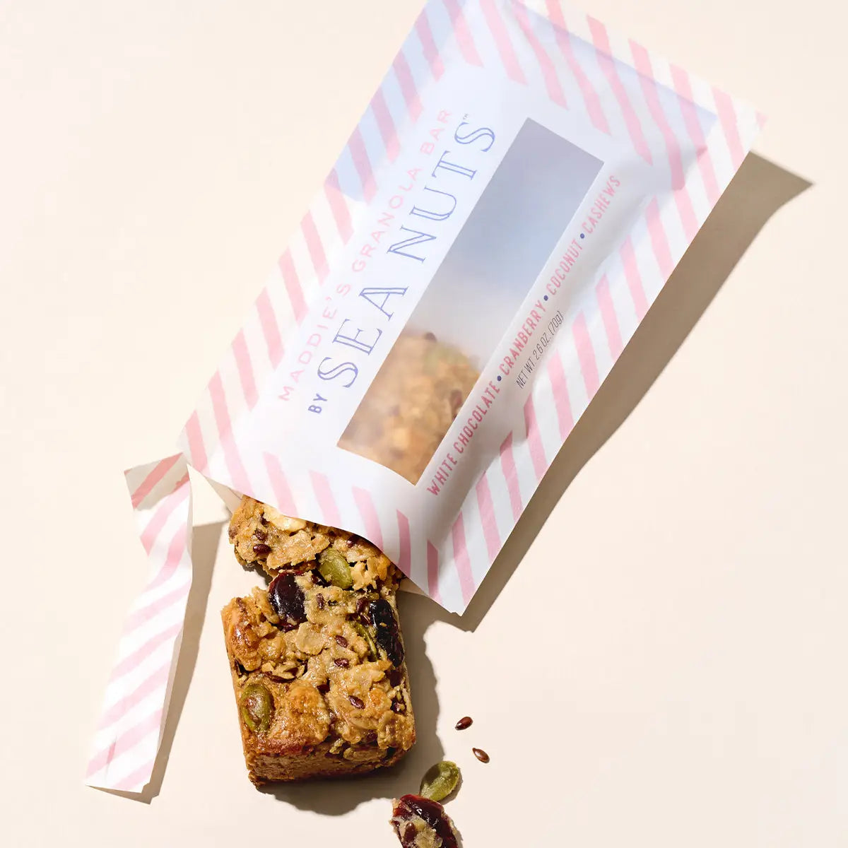 Meet Maddie’s White Chocolate, Cranberry, Coconut, Cashew Granola Bar—your new go-to snack from Sea Nuts Cape Cod. It’s got sweet cranberries, creamy white chocolate, crunchy roasted cashews, and toasty coconut flakes—all the cozy, feel-good flavors in one dreamy bar. We mix in pumpkin seeds, oats, local honey, a dab of cashew butter, and just a pinch of sea salt for that sweet-salty balance. Made in small batches with clean, natural ingredients and lots of love from our woman-owned kitchen. Perfect for beach days, bike rides, or whenever you need a little Cape Cod joy in your pocket.