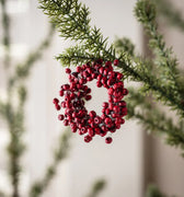 This hearty wreath ornament will add a festive feeling with a touch of wooden, red berries crafted into this petite ring ornament.