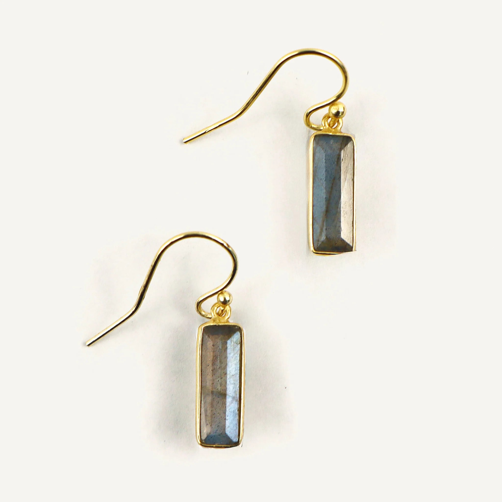 The Madeira Earrings feature the natural beauty of labradorite in a timeless, graceful design perfect for everyday wear. Handcrafted in Rajasthan, each pair includes a petite faceted labradorite stone set in sterling silver, and finished with 18k gold. The French hook design ensures effortless wear, while each stone’s unique iridescence guarantees that no two pairs are alike.