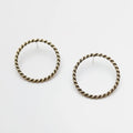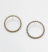 Front-facing hoops with a twist of history — these 1 3/8" circles are cast in recycled brass with an antiqued finish, giving them a lived-in glow. Anchored by sterling posts and backs, they strike the balance between raw edge and everyday wear.