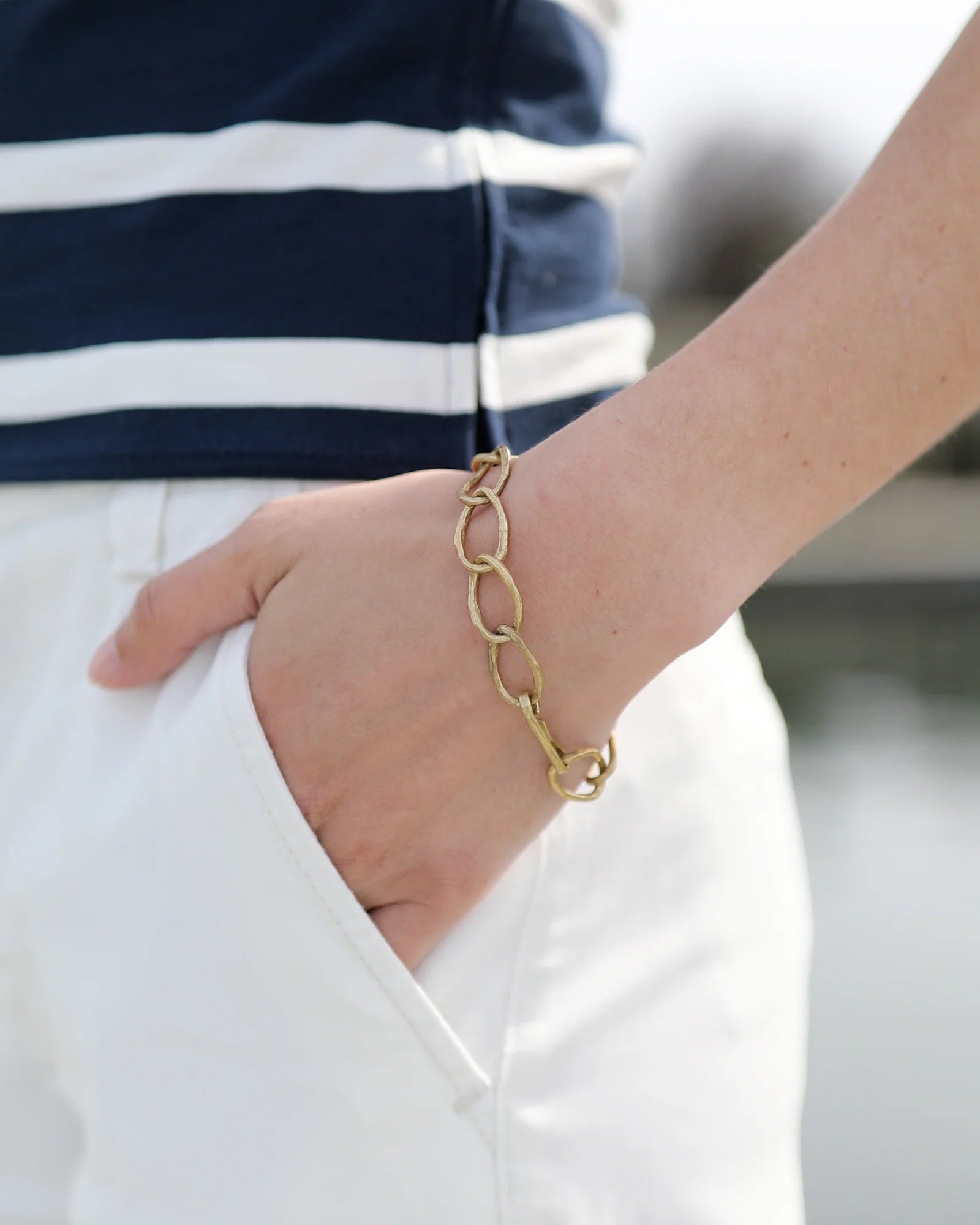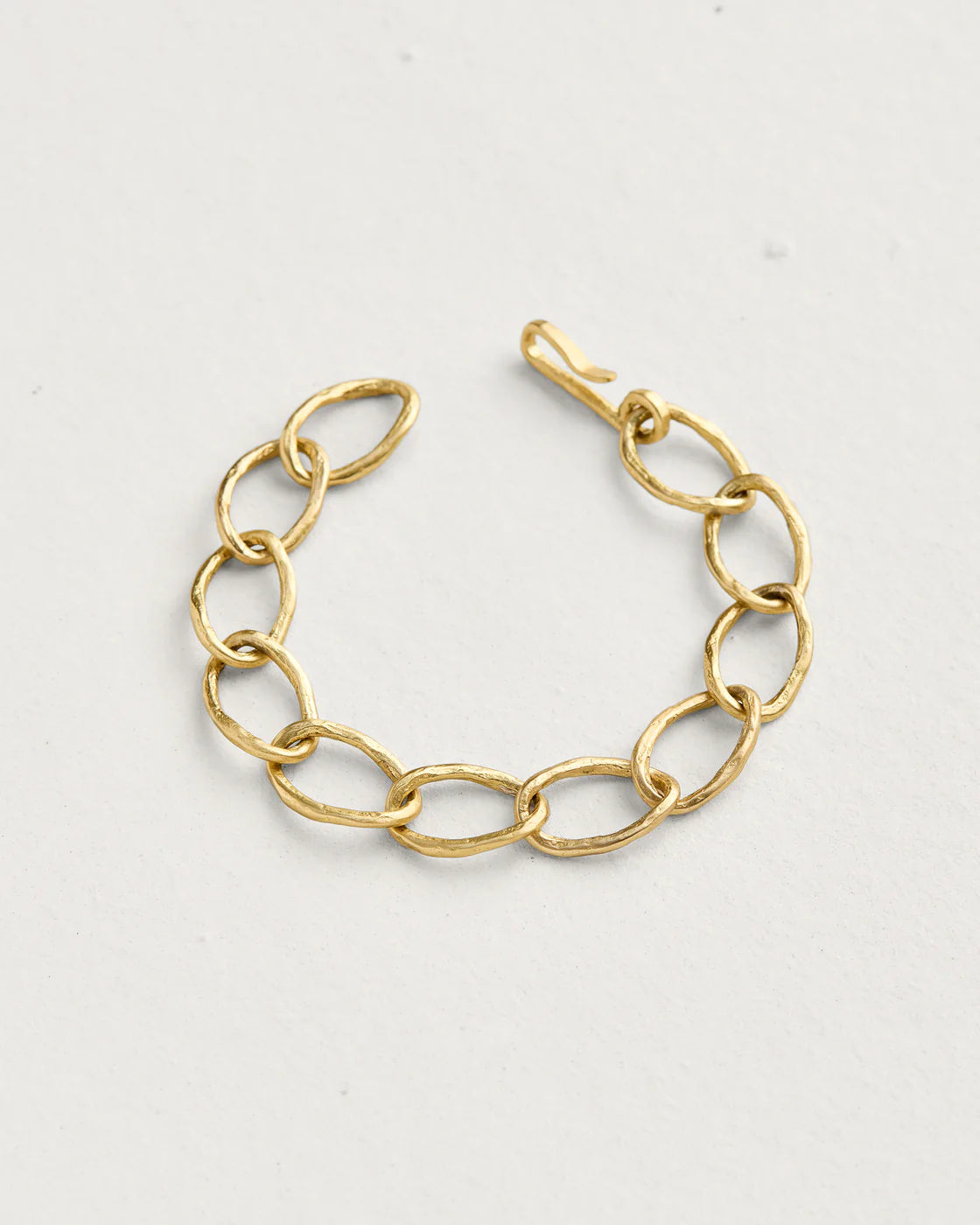 Textured like metal touched by the sea, this hand-wrought curb chain bracelet carries a perfectly weathered finish. A timeless classic with zero fuss, it adds just the right edge—equally at home with a sundress or your go-to tee. An easy everyday piece that quietly elevates the moment.
