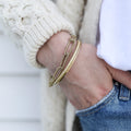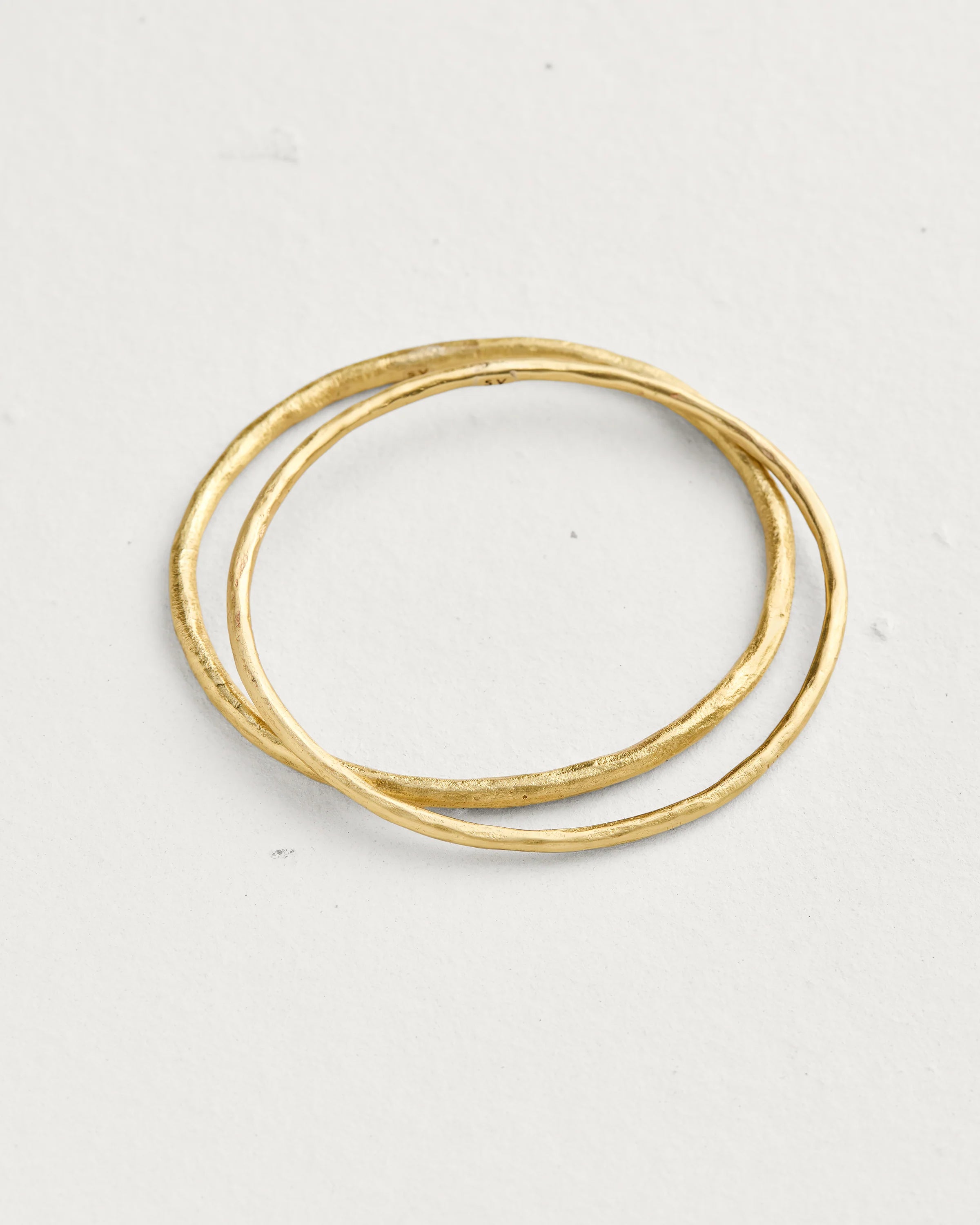 Hand-wrought from recycled brass, these bangles have a subtle, weathered texture that feels lived-in yet refined. Their low-key shine catches just enough light to stand out, with an anti-tarnish finish to keep them looking sharp for years.