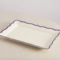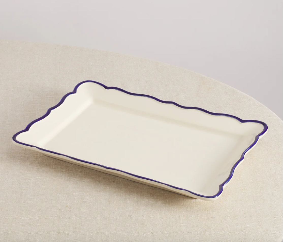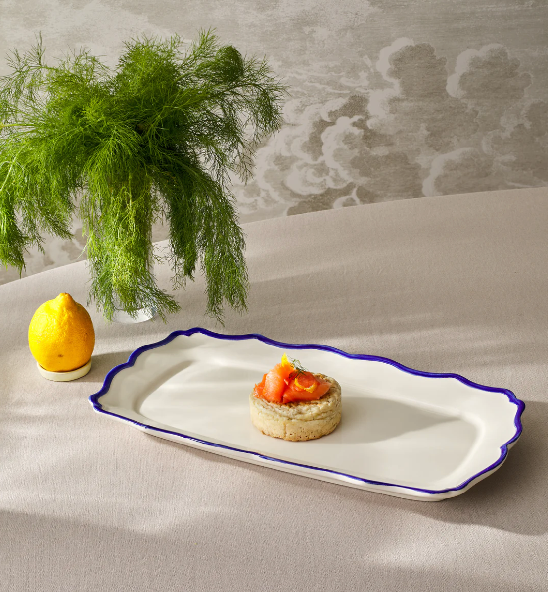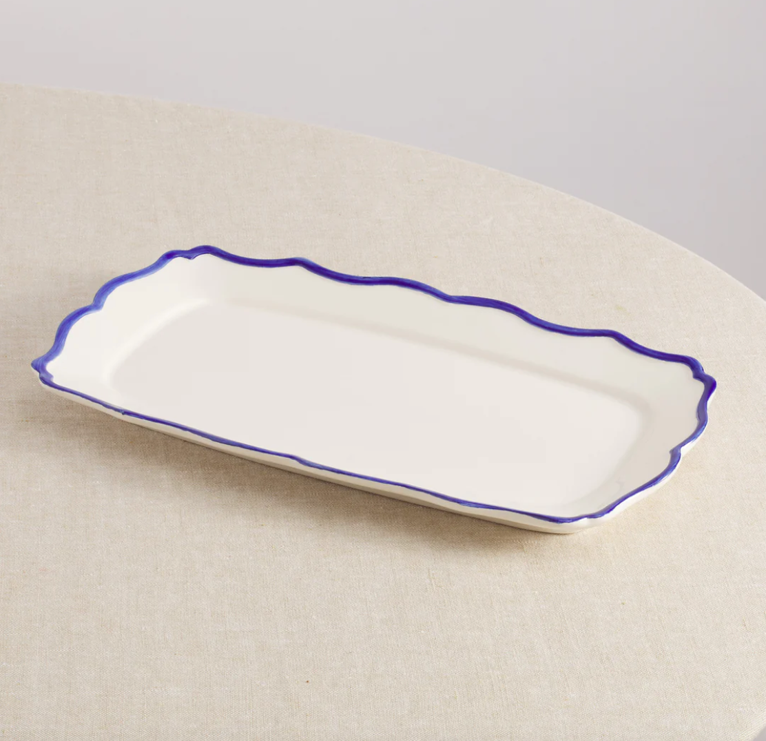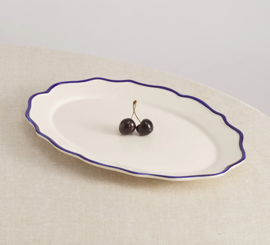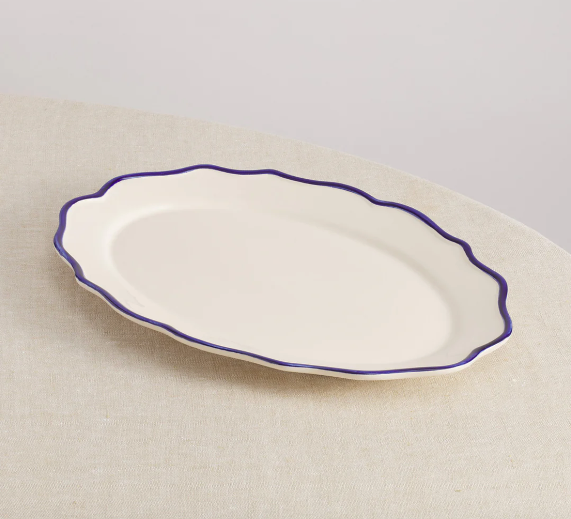 The Jane Collection of platters brings a touch of charm to whatever's on the menu—whether it's a slow Sunday roast or last-minute takeout. A hand-painted rim gives your meal its moment, like a little frame for your culinary masterpiece (or your favorite dumplings). Made in Portugal from 100% ceramic earthenware. Oven safe up to 350°F and happiest with a handwash.