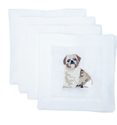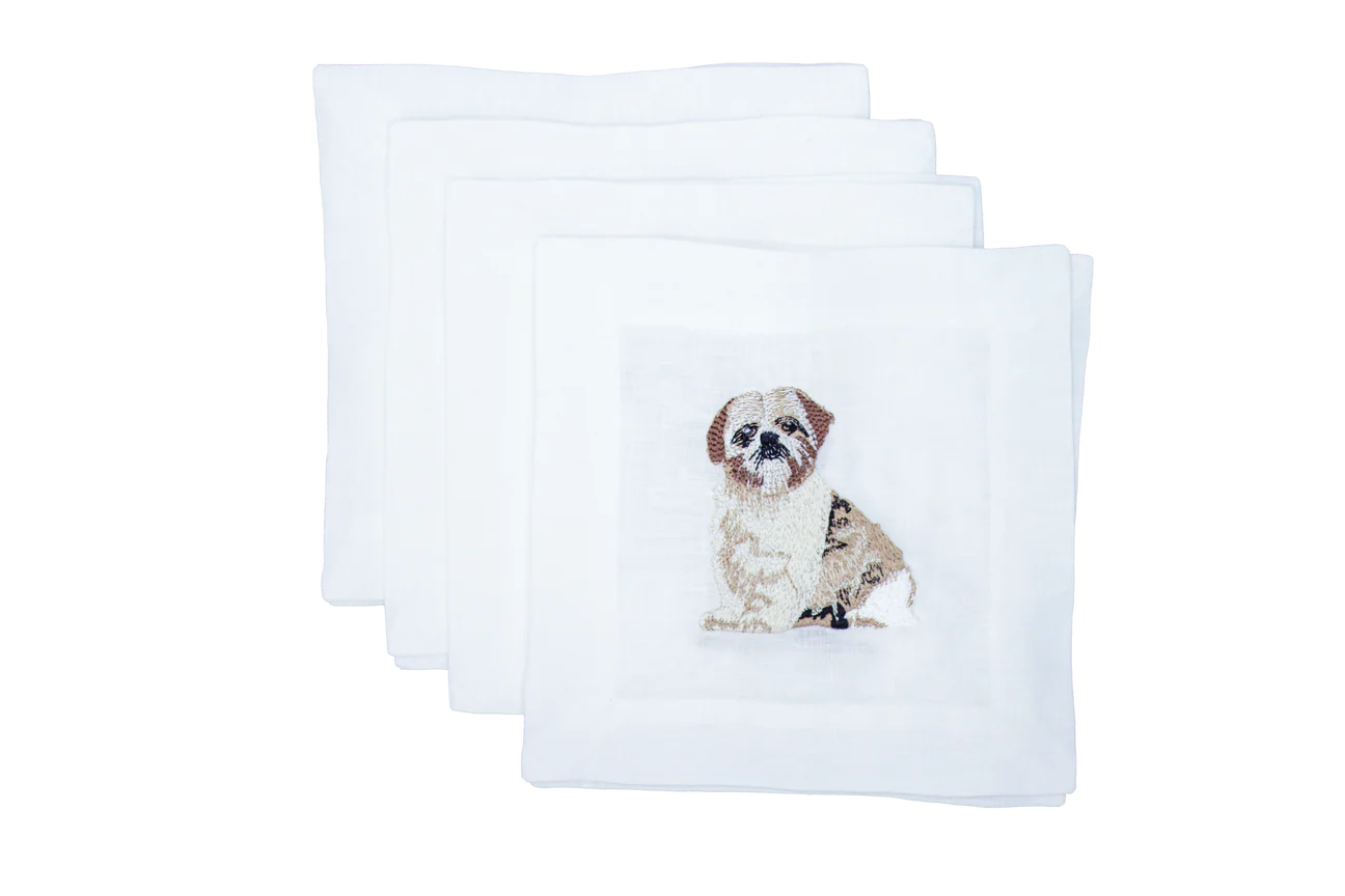 Set of 4 Shih Tzu Embroidered Cocktail Napkins