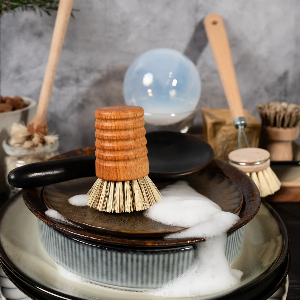 Give your sinkside some soul with this sleek Pot & Pan Brush — a beautiful brush with a ribbed, oiled beechwood handle and sturdy union-fiber bristles. Designed to look as good as it works, it scrubs through baked-on mess while fitting effortlessly into your kitchen’s aesthetic. 100% biodegradable and FSC-certified, it’s cleaning with conscience and style.