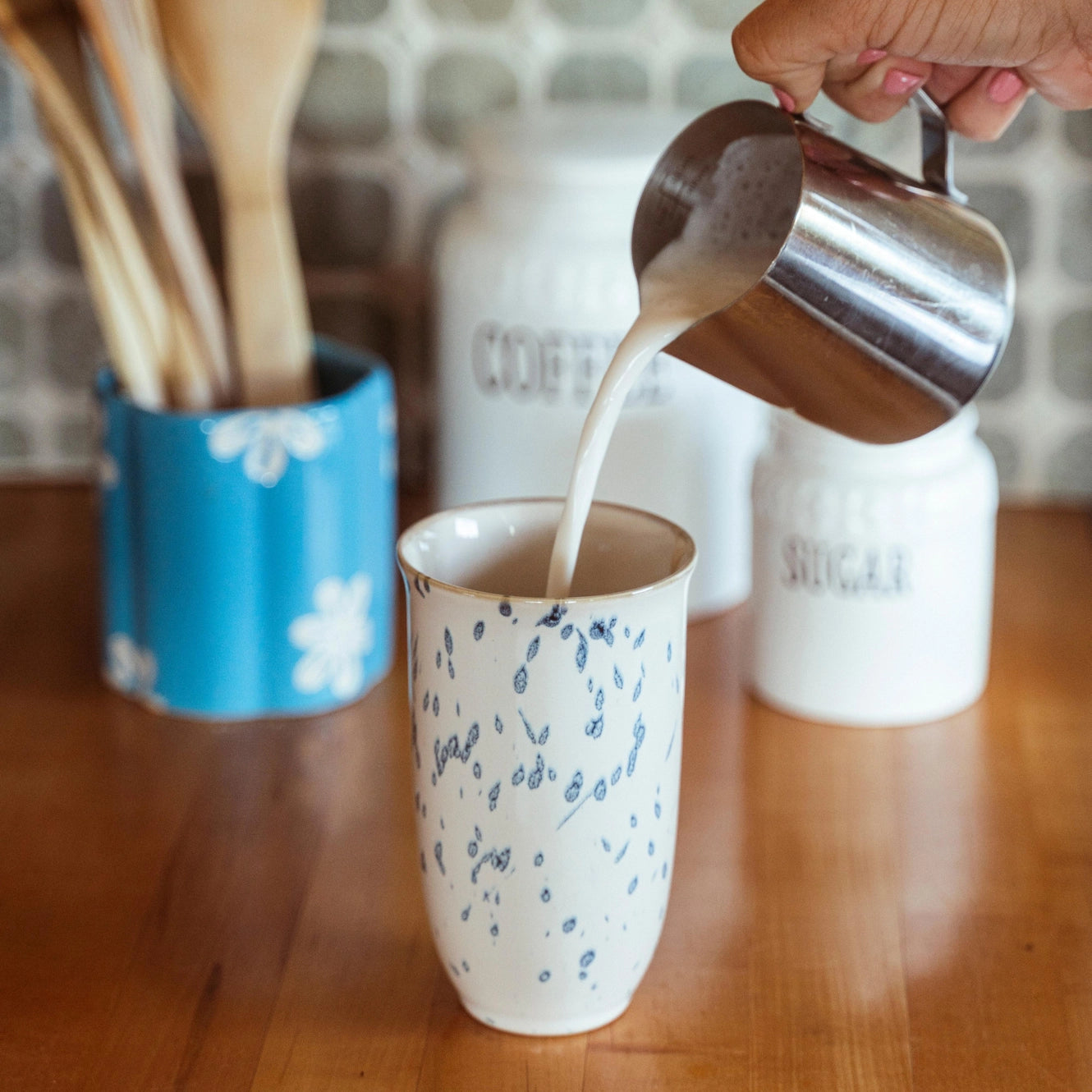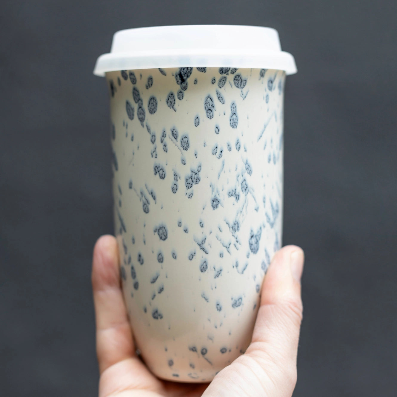 Handcrafted ceramic travel mug with a soft glaze and natural, blue speckled tones. Each one is uniquely finished, making no two exactly alike. Made from durable stoneware for a clean, true taste—no plastic or metal. Finished with a BPA-free silicone lid and matching heat sleeve, perfect for slow mornings, daily commutes, and thoughtful seasonal gifting.