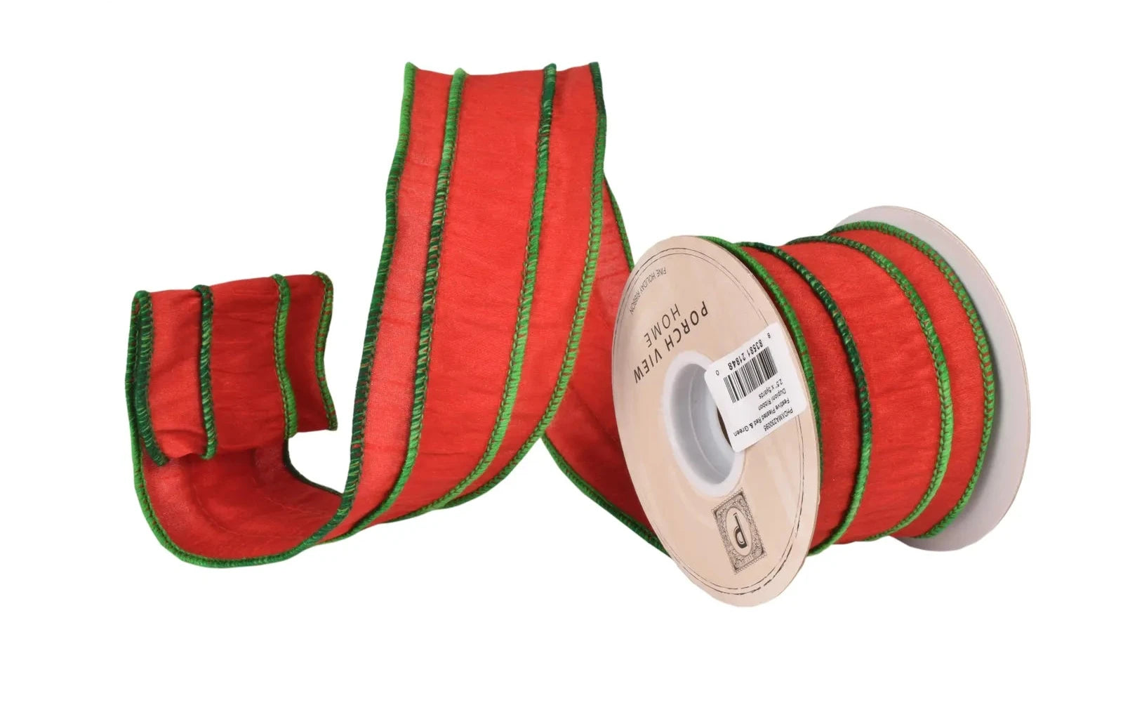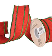 This wired edged, 2.5" festive red Dupioni ribbon with contrasting jolly green embroidery is perfect for trimming the tree or for an extra-special wrapping on holiday gifts.