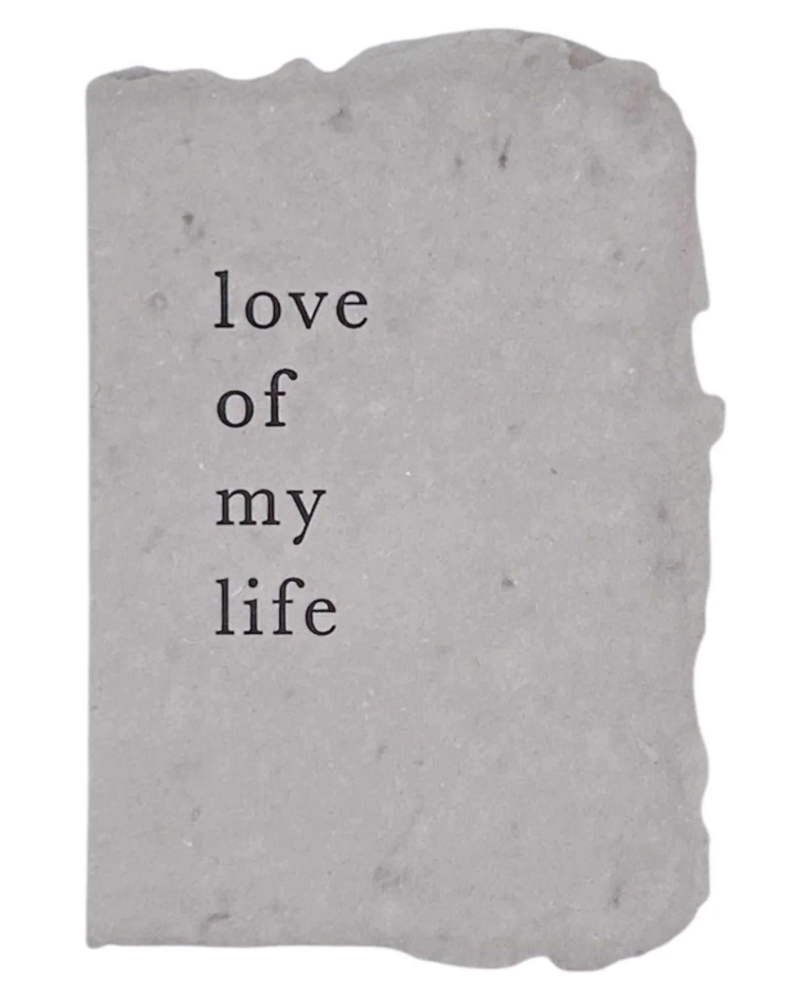 Soft gray handmade paper with black letterpress ink.