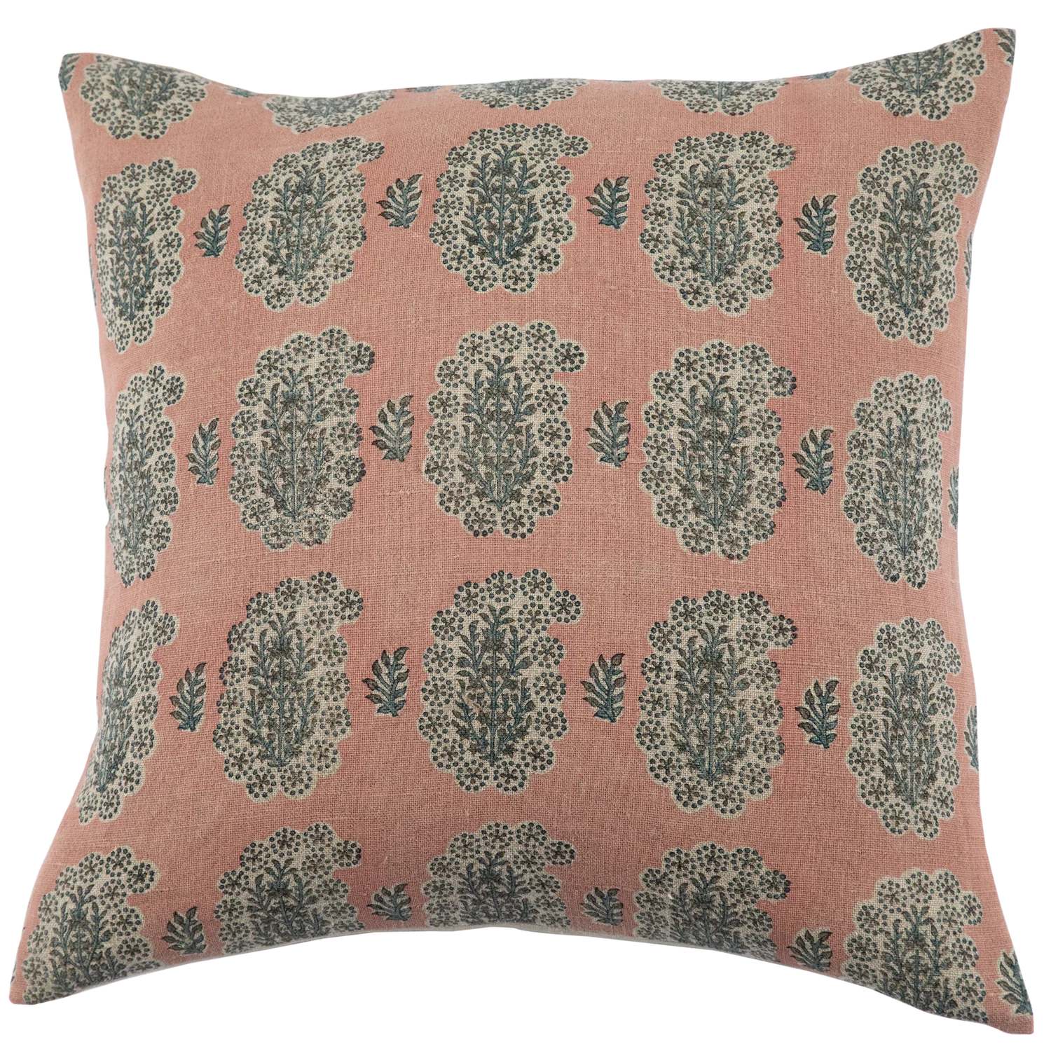 A striking 22" x 22" double-sided block print pillow in a soft blush tone, featuring an intricate paisley-inspired pattern. Hand-printed for rich texture and artisanal charm, each pillow has subtle variations that make it truly one of a kind. Insert is included, so it’s ready to style the moment it arrives. A perfect pop of color and pattern for your sofa, bed, or favorite reading chair.
