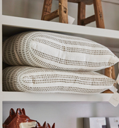 This playful pillow brings a modern twist with olive green dashes hand block-printed on crisp white cotton. The design is clean, graphic, and effortlessly cool. Double-sided for versatility, with a hidden zipper and a soft down feather insert that keeps things comfy.