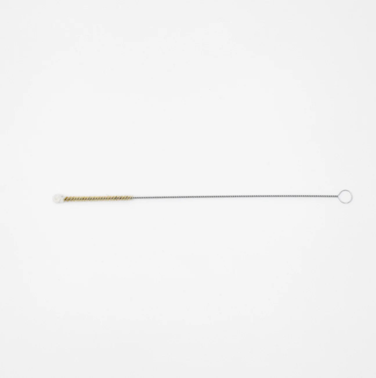 This slim line bottle brush with a white wool tip for the bottom of narrow vases, children's drink bottles, delicate champagne flutes, or our glass straws.