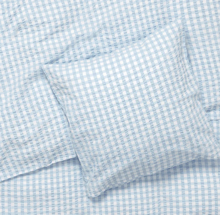 100% organic, sustainable cotton that's both OEKO-TEX®-labeled, and GOTS-certified. Thanks to its unique seersucker weave, this set allows air to flow freely between your skin and the duvet, so you can stay cool and comfortable, and wake up feeling refreshed. And the best part? There’s no need to iron it. Simply let the summer breeze dry it on the line, and it’s ready to use: relaxed, airy, and effortlessly easy.