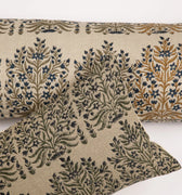 Beautifully hand block-printed pillow on linen fabric. Featuring a floral pattern in the colors Olive and Indigo. *Lumbar sizes may vary in color including yellow tones as well as Indigo and Olive.
