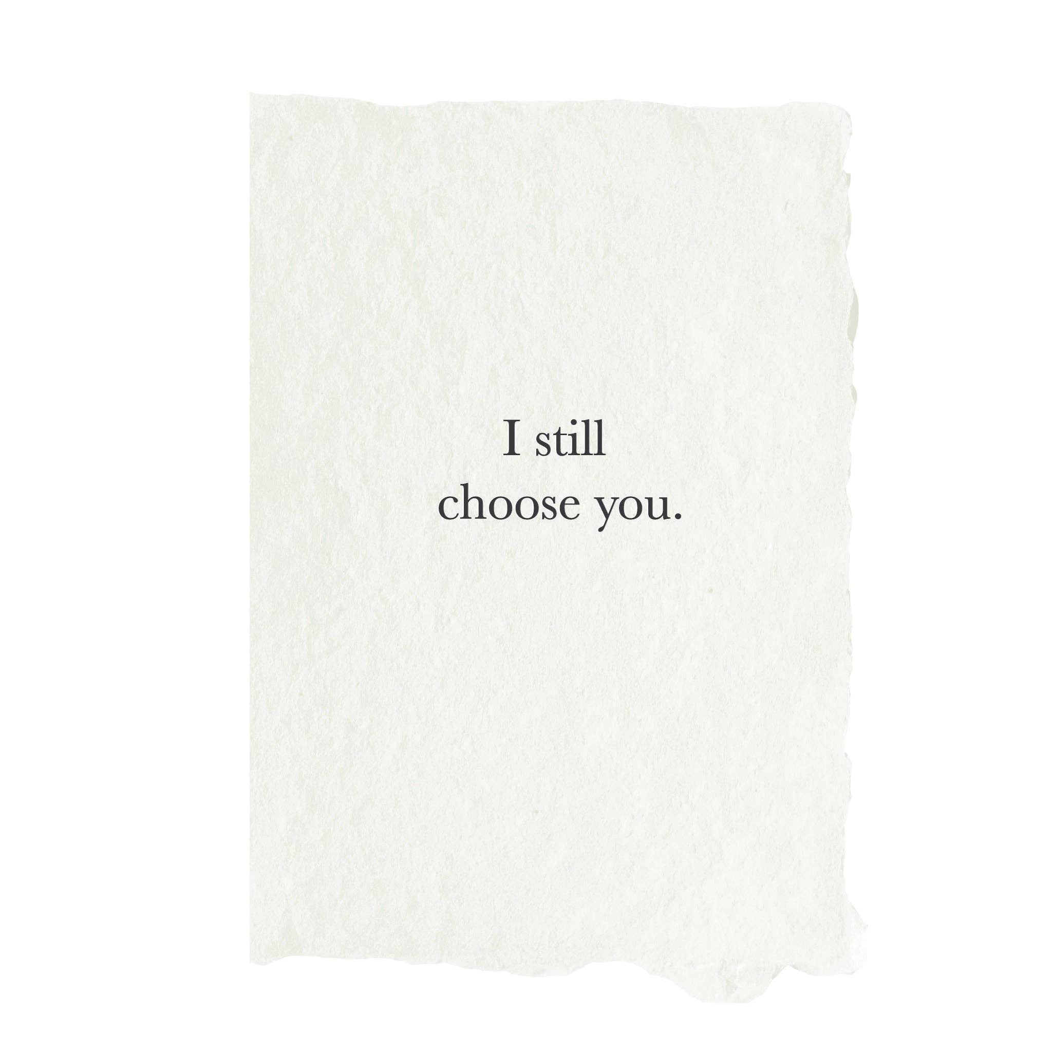 Soft white handmade paper with black letterpress ink. Handmade paper card with four full deckled edges, hand folded with inside blank. Front is letterpress printed; back is letterpress printed with a small note including information about the natural dyes used to color each unique piece of paper.