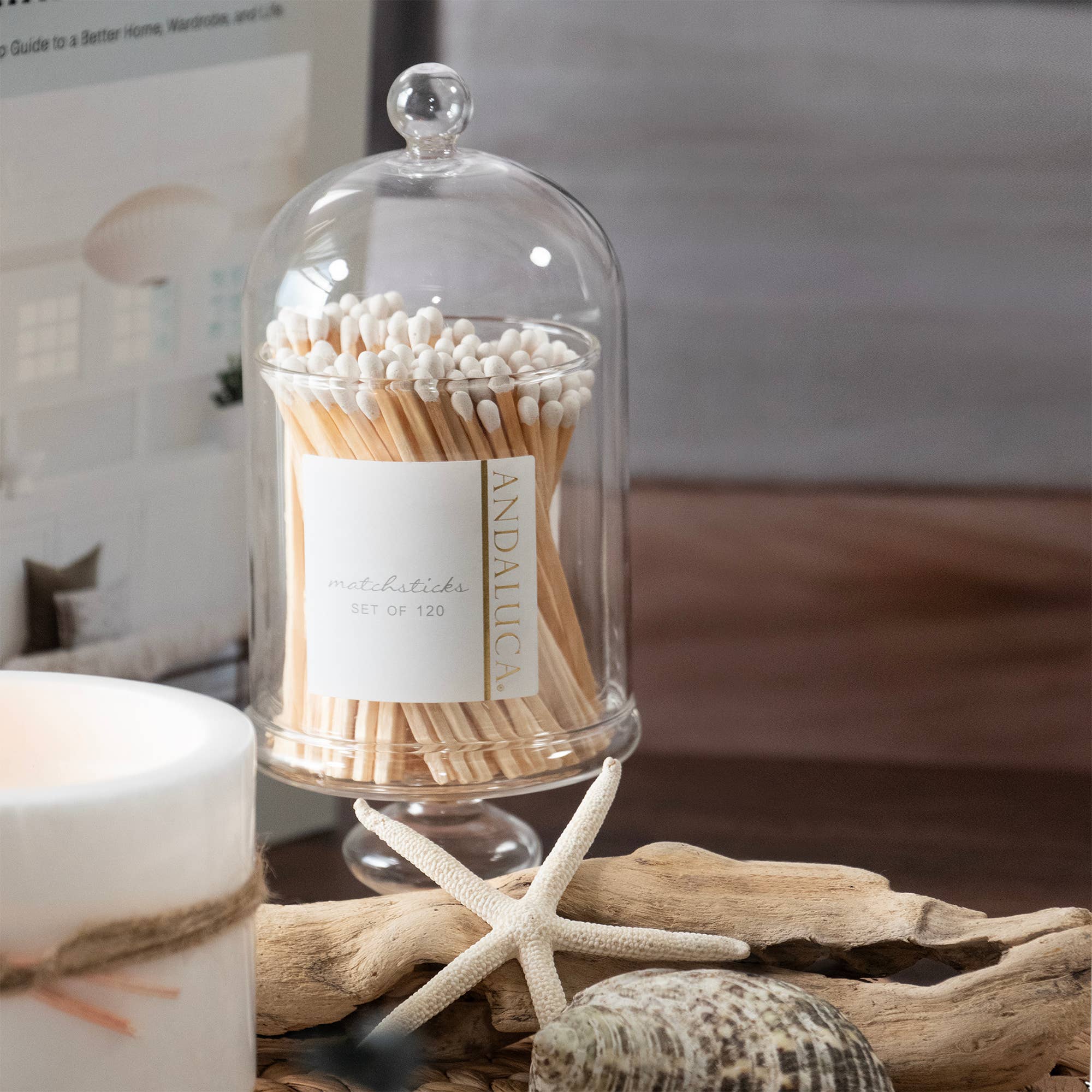 Tall Glass Jar with Lid & 120 Wooden White Matches