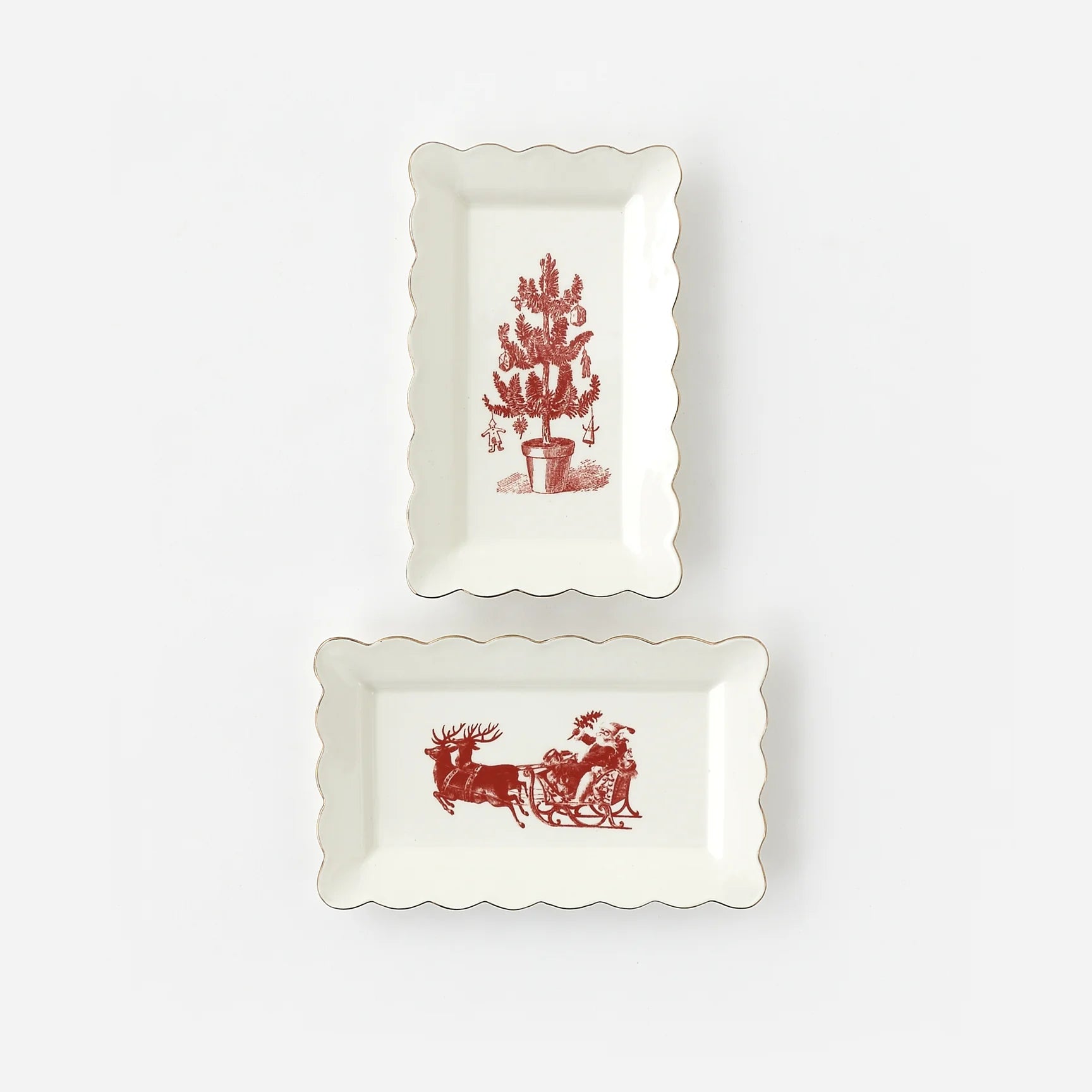 A charming relic of holiday cheer, this petite 4.25" × 7" white ceramic tray features a nostalgic scene—either a jolly vintage Santa and sleigh or an old-fashioned Christmas tree. Perfectly imperfect with retro charm, it’s just the right size for a few cookies, matches, or a festive catch-all moment.